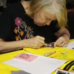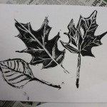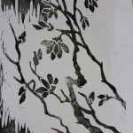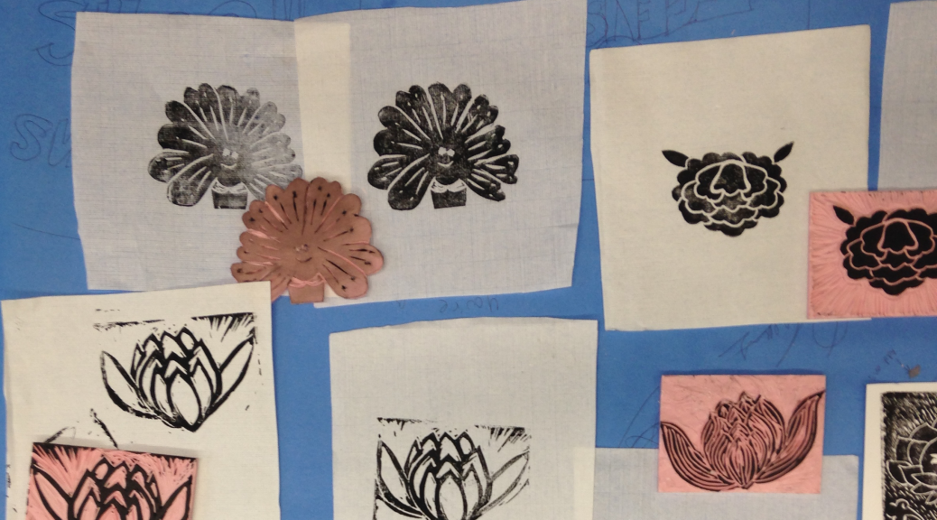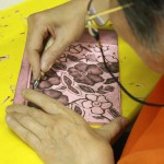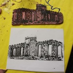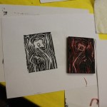 1. Finished carving linoleum block and print with printmaking ink to see and touch up details.