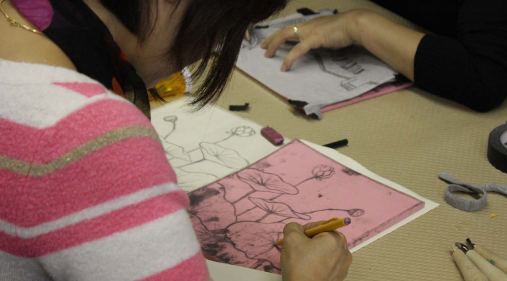 On week 2 we worked on basic skills to use materials of Korean Ink Painting. In order to express different tones of ink in one brush stroke, students have to dilute ink with water and hold three different tones of … Continue reading Printmaking meets ink painting. Week 2 →