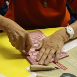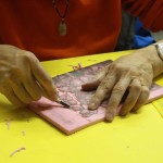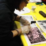 2. Watch out to spread printmaking ink out evenly on roller by rolling it on even surface of ink pad.