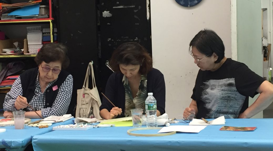 English below. 8 주; 8번째 마지막 수업에서는 주제 부분을 중심으로 강조할 부분에 마지막 채색을 더해주고, 전체적으로 색선을 다시 그어주어 작품을 완성 하였습니다. 꽃, 주제 장식, 꽃술 등등에 금색 선이나 점, 밝은색 꽃술 등을 더해줌으로서 완성도와 생동감을 높여주었습니다. 8주동안 수고하셨습니다. 8th … Continue reading Korean Painting on Silk Workshop – Week 8→
