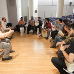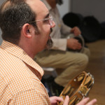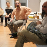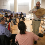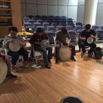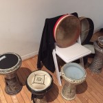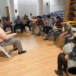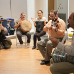 On the second class was joined by percussionist Rami ElAasser http://ramitabla.com/ who taught us the basics of Arabic Rhythms. We learned how to produce the basic sounds on the drums – “dum” and “tek.” We learned several rhythmic patterns (called “iqaa” in Arabic), including “maqsoum,” “beladi,” and “wihda” – all different variations on 4-beat rhythms. We practiced singing and playing, using the songs “Ghannily Shwayya” and “Min Hubbi Fiik Ya Gaari.” We also sang through the maqamat known as “Rast” and “Nahawand,” comparing the 3rd scale degree, which is lower in Nahawand.