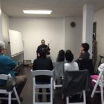 The class reviewed all of the concepts explored in the previous classes, comparing the mood of the different maqams (melodic modes) in the songs “Min Hubbi Fiik Ya Gaari” and “ish-showq mihayyarni.” We reviewed some of the rhythmic patterns used in Arabic Music. We compared the context of Syrian traditional music – which maintained a continuity of repertory from the 19th century and earlier – to 20th century Egyptian music – which saw innovations in song form and new compositions for contemporary media (radio and film in particular). We watched film clips of Naima Akif dancing in movie musicals from the 1950’s, and sang through portions of the songs covered in previous classes.