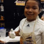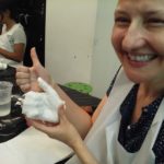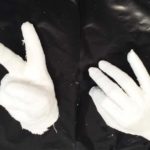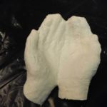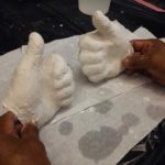 During this class we worked with plaster bandage to do body cast. The students watch the demo in how to use the material, after that they use their own bodies as molds and they did a sculpture that came out of their hand shapes. They worked in pairs, one being the model and other the one applying the material then shifting positions. Nice hands sculptures came out of the assignment! We also analyzed all the pieces made during the first two classes in which students used an object and then their body’s to make imprints analyzing the different techniques and depending of the project which one to choose from.