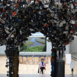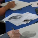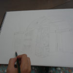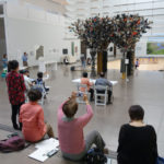 下半堂的課我們到一樓去畫的Mierle Ukeles的Arch。這個拱門非常的複雜,不僅每個柱子都不同,上面還裝有幾千雙的手套,是個非常難畫的物件。有的同學試著畫出了整個拱門,有的則是專注在某個細節。下面是今天的照片:
