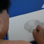 在表現立體感之前,要先學會在平面上畫出一個正圓:從畫輪廓線開始。正圓是一個對稱平均的形狀,所以我們可以先從畫正方形開始,並且畫出中間線跟水平線。再來,運用”直線“來鏈接這些轉折點,再慢慢修成曲線。能夠把複雜的形狀簡化成短的直線來接合而成,也是必要的概括能力。
