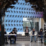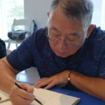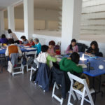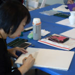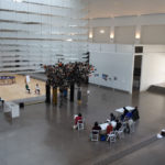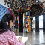 接下來我們到一樓,繼續上禮拜未完成的拱門寫生。很多同學都對拱門上數不清的手套感到疑惑,怎麼畫才能表現這種多數感,又不顯得單調? 結果很多同學都找到了自己的方法,藉由明暗變化、線條的變化,來簡化整個拱門,用光線來表現體積感,並由擦子擦出某些亮面,引導觀者的視覺移動,讓老師也不禁覺得每位同學都很厲害啊!