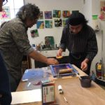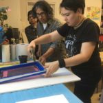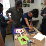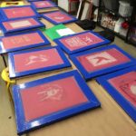 Esta primera ronda de impresión nos concentramos en imprimir todas las pantallas en un solo color, de esta manera nos podemos concentrar en las partes mas importantes del proceso como la ubicación de la imagen en el papel, el registro de la imagen con la pantalla en la mesa de impresión, la manera como aplicamos la tinta, movemos el squeegee etc.