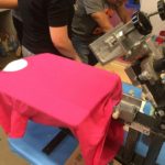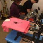 Durante las clases pasadas, los estudiantes preguntaron reiteradamente como se imprimía en textil, para complacer esta inquietud trajimos una maquina de imprimir camisetas y pudimos imprimir varios de los diseños en camisetas y otras prendas de vestir.