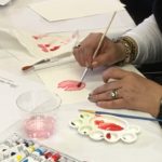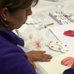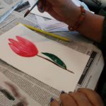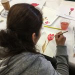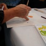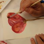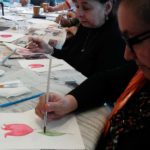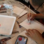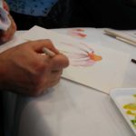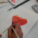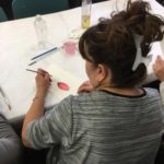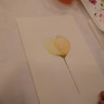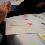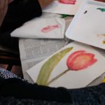 Empezamos viendo un video donde nos esplicaban como usar una tecnica aprendida anteriormente: “mojado sobre mojado”, para empezar a trabajar nuestra primera de las tres flores que dessarrollamos en esta sesion.