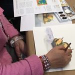 In this session, the students have chosen the size of their paper, the composition and size and number of elements to perform within their artwork.