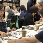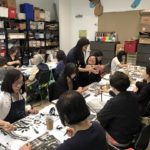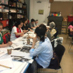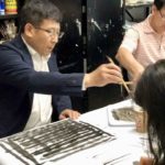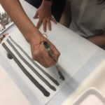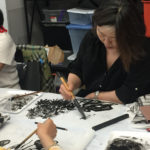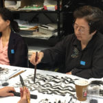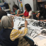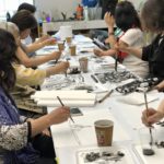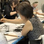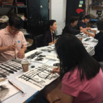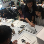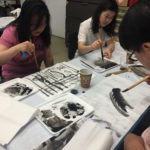 Participants warmed themselves up with ink painting(Soo-mook-hwa) on raw rice paper (Hwasunji). Techniques and effects in ink painting are different from traditional color painting (Chae-saek-hwa). These unique expressions from ink painting will be used as one of many design elements of a final project. Please keep that in mind when your practiced.