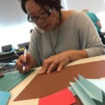 It’s the 3rd week into our Handmade Sunprint class. Today we learned more advanced bookmaking techniques. Each student made a booklet using needle and thread. We also learned how to make a flag book.