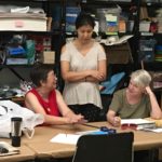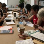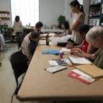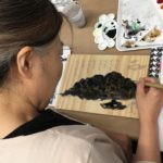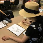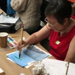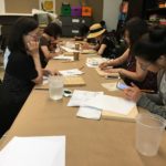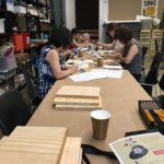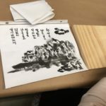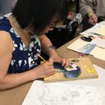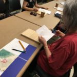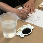 In the fourth class, students began to transfer a detailed sketch onto a wood panel with a pencil. There was wide ranges of progress from ones who are still working on a sketch to ones who already paint/carving. Both are making their own progress.