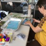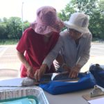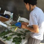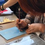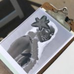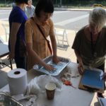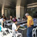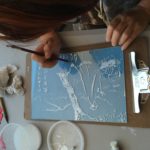 It’s great weather today. We had our 5th class outdoor in front of the museum. This time, our students brought all kinds of things to make their sunrprints. Anything from plants, fabric, small souvenirs to live watercolor painting, our students were being very creative in making their own prints. Here are some photos.