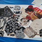 La segunda parte fue la realización de collages por los asistentes del taller; experimentaron con diferentes materiales e hicieron sus propias piezas tomando como referencias a los artistas que analizamos en la primera parte de la clase.