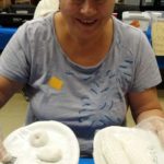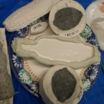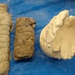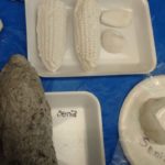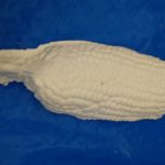 So far we have been using plaster as a mold but today we used it as a cast material on the silicone mold and trying a different mold. We used the oil clay to make a press mold using corncobs as a model.