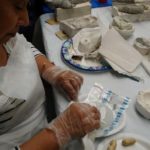 También vimos ejemplos de artistas modernos y contemporáneos que usan naturalezas muertas en formas tridimensionales y en diferentes materiales. Todos los ejemplos que vimos son referencias para el proyecto final de los participantes en el que van a componer una naturaleza muerta con los moldes de botellas y frutas que han estado haciendo.