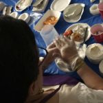 Luego aprendimos una técnica llamada Paper-Mache al usar un CelluClay instantáneo previamente mezclado con agua y presionándolo dentro de un recipiente de plástico que servía como molde.