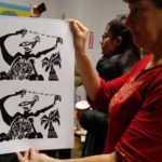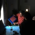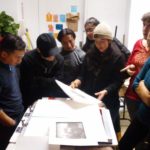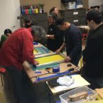 Las dejamos secar en un cuarto oscuro que se construyó para esa clase dentro de un carrito para transportar materiales de arte. El maestro nos demostró que con ingenio y poco dinero, podemos empezar a construir nuestro taller de serigrafía en casa.