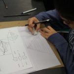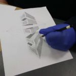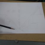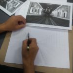 La perspectiva con 3 puntos de fuga, quiere decir que el observador está muy abajo o muy por encima de la línea de horizonte. Los estudiantes hicieron un ejercicio de perspectiva utilizando el lápiz 3H.