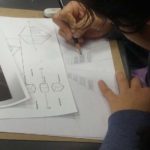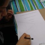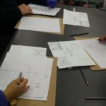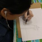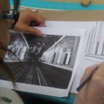 10 min. – Review of previous class, techniques, and preparation for the art-making process. We proceed to the warm-up exercises on newsprint paper. After the warm-up, the students started their lesson on perspective. This includes 1 point perspective and 2 point perspective.