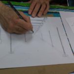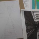 45 min. – After instructions and samples, the students engage in their perspective studies and drawings. I visit each student during this span of time. The student will receive a sheet of paper with different samples of 1 and 2 point perspective drawings to practice from. Proper use of pencil is required.