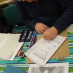 5 min. – Break. Students stop to stretch and look at their classmates’ advancement.