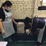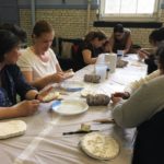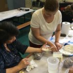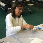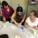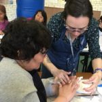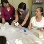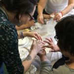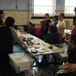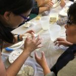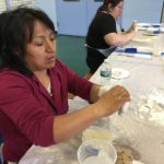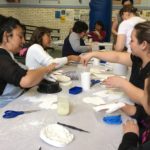 En esta clase los estudiantes sacaron los relieves del molde, separando el yeso de la arcilla. Esta se debe revisar para evitar que queden partículas de yeso antes de reciclarla.