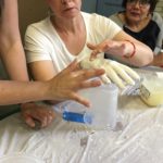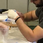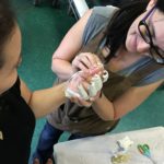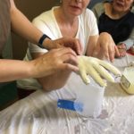El siguiente proceso técnico a desarrollar fue: El Molde con Venda de Yeso (Plaster Bandage Mold). La venda de yeso es una gasa cubierta con yeso. La gasa le dá estructura al yeso cuando este se solidifica. En esta sesión se utilizó esta técnica para sacar un molde del cuerpo. El modelo (en este caso el estudiante) debía quedarse inmóvil por lo menos 10 minutos mientras el yeso se solidificaba. Se usa vaselina como desmoldante para evitar que el yeso se adhiera a la piel.