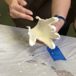- Si se hace el molde de la mano abierta es recomendable sobreponer 3 capas de vendas. Si la mano está cerrada, se pueden poner solo 2 capas.