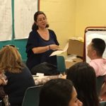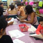 Luego jugamos a ‘tirar la pelota para hacer una pregunta’, en el cual cada alumno le debía hacer una pregunta a la profesora.