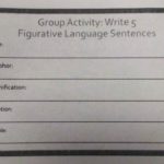 Then we proceeded to read a text about the Figurative Language: simile, metaphor, personification, alliteration, and hyperbole. After knowing the definition of Figurative Language and its respective examples, we proceeded to work in groups, designating a secretary who wrote the sentences created by all the members of the group. Each group shared with the other groups the sentences created, through their secretaries, who read them aloud the five sentences written by each group.