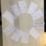 While many were initially reluctant to draw, as adults who claim not to be artistically inclined often are, the simplicity of the prompts eased them into using various line configurations to make an attractive and eclectic collection of initial drawings.