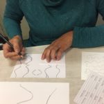 While many were initially reluctant to draw, as adults who claim not to be artistically inclined often are, the simplicity of the prompts eased them into using various line configurations to make an attractive and eclectic collection of initial drawings.