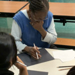En la segunda sesión de Creación de Patrones trabajamos con formas. Como reto inicial, empezamos la clase con la identificación de formas irregulares en algunos de los ejercicios de la semana pasada. Útil práctica para delinear y sombrear formas inusuales que pueden servir para potenciales patrones o diseños. Continuamos la exploración con el trazo de formas geométricas y después orgánicas utilizando nuevas herramientas. Ambos tipos de formas fueron posteriormente combinados en híbridas siluetas que animaron a los participantes a dibujar con más soltura.