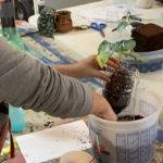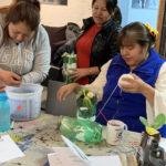 Axel comenzó su explicación de los distintos tipos de cultivo hidropónico, y cuáles son las plantas que se pueden crecer con este sistema. Las mujeres comenzaron remojando la fibra de coco, cortando la botella de plástico, y creando el plantero, con su manguera, agregando una cuerda para colgarlo en el plantero comunitario. Veronica recordó los tes que su abuelita le daba para el dolor de estómago, con hierbas de su jardin. No hacia falta ir a la farmacia, siempre habia algún curandero en la familia que sabías que plantas y cómo usarlas para curar.