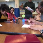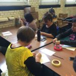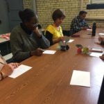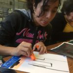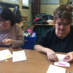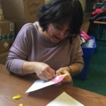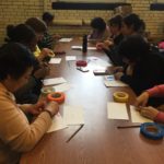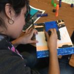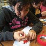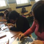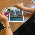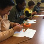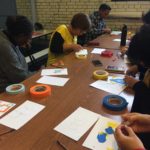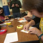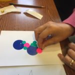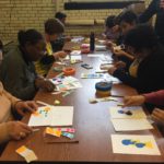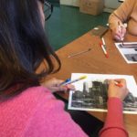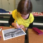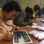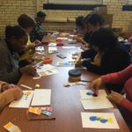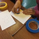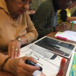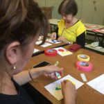 The first two sessions purposely avoided the use of much color to concentrate on lines and shapes. As we progress to the design of the participants’ individual patterns, we started exploring color and texture with some simple yet challenging materials.