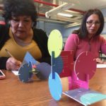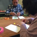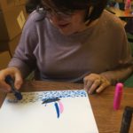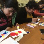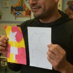 Las primeras dos sesiones, los participantes evitaron intencionalmente el uso del color para concentrarse en líneas y formas. Mientras avanzamos a diseñar los patrones individuales de cada participante, comenzamos a explorar el uso de color y textura con algunos materiales simples pero que demandan un nivel de exigencia.