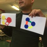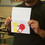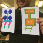 Hoy comenzamos a usar color, combinando dibujo de observación de formas geométricas usando un par de variaciones de color. Los resultados fueron muy sorprendentes ya que las indicaciones son a menudo interpretadas con el estilo individual de los participantes.