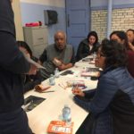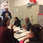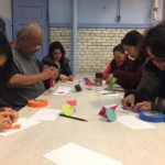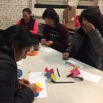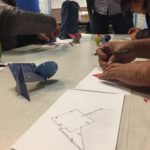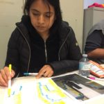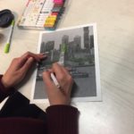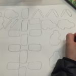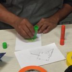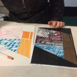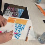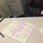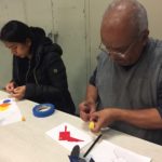 The first two sessions purposely avoided the use of much color to concentrate on lines and shapes. As we progress to the design of the participants’ individual patterns, we started exploring color and texture with some simple yet challenging materials.