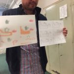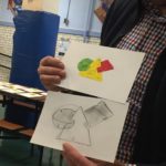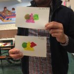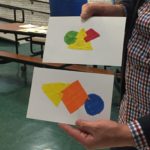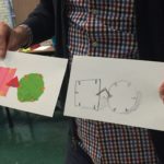 Hoy comenzamos a usar color, combinando dibujo de observación de formas geométricas usando un par de variaciones de color. Los resultados fueron muy sorprendentes ya que las indicaciones son a menudo interpretadas con el estilo individual de los participantes.