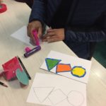 Today we started using color, combining observational drawing of geometric shapes with a couple of iterations of coloring. The results were quite astounding as prompts and directions are often interpreted with individual flair.