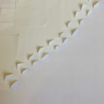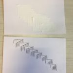 La textura fue el último elemento de diseño incorporado a la clase antes de comenzar a trabajar en los proyectos finales de los participantes. Combinando color y formas, la clase usó adhesivos para recrear texturas que habían creado en semanas anteriores o que habían encontrado en alguno de las tareas fotográficas. El reto consistía en que los adhesivos proporcionados eran de dos tipos muy distintos: blancos y rectangulares o circulares y de color (en ambos casos habían varios tamaños). Como ya ha ocurrido, los resultados fueron sorprendentes y los participantes consiguieron usar el material de maneras diferentes y creativas. Los adhesivos aparentaban ser sencillos al inicio, pero los participantes notaron cuán exigente era conseguir la textura elegida ya que se necesitaba planificar con atentción.