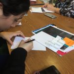 Texture was the last design element to be incorporated into the class before starting to work on the participant’s final projects. Combining color and shapes, the class used stickers to recreate textures that had been created in weeks past or that had been found in some of the photo assignments.