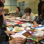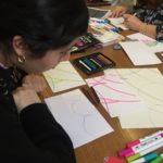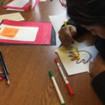 Participants reviewed the work of the past weeks and were asked to choose from their files and also encouraged to explore more. They will have a chance to work on their pattern for a couple of sessions, trying different version until they have the color, line, texture and shape combination that works best for their design.