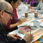 Ella dijo: “Fue genial ver a todos traducir su foto en un retrato, y al mismo tiempo experimentar con diferentes formas de usar acuarelas. Me encantó ver la variedad de retratos que la gente inventó al final de la clase, ¡cada pieza de un alumno fue muy diferente! “