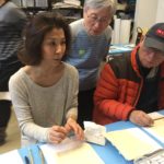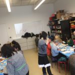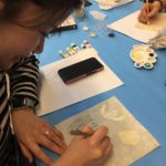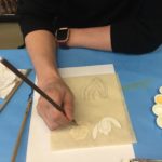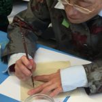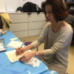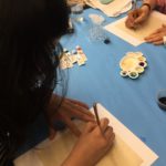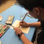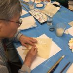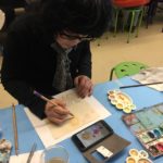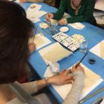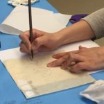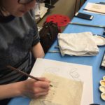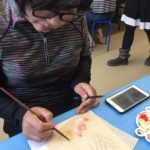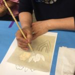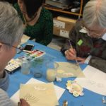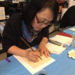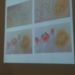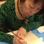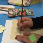 In the first class, participants were informed by the Minhwa and silk painting techniques that are part of Korean traditional color painting. The students did share materials to practice basic and simple techniques such as Balim and Bacchae.