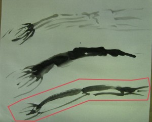3. 구륵법; 물체의 형태를 윤곽선으로 그린 후 그 안에 채색을 하거나 먹의 농담으로 채우는 기법