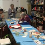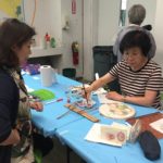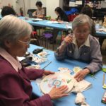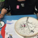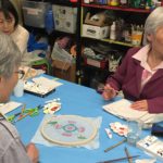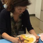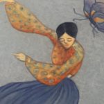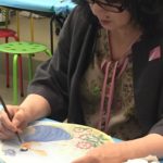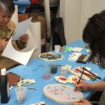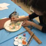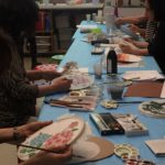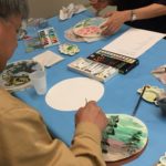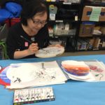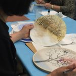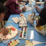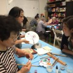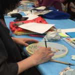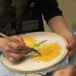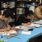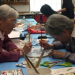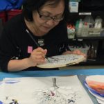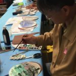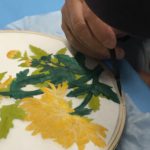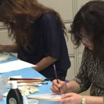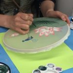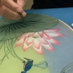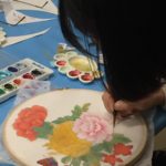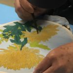 In the final class, students added the last layer of color and redrew the outline with a darker color to complete the work. Some students had the opportunity of adding delicate dots or lines of gold pigment to the stem, pollen or around the composition. The golden dots gave intensity and richness to the overall artwork.