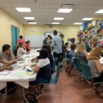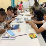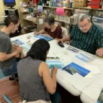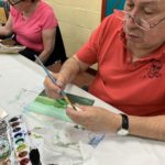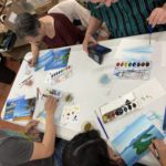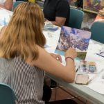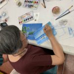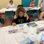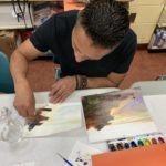 The Class of Saturday, June 22, 2019 at the Corona Library, started with a quick set up. The students would grab a mixing tray, a paint tray, three different size brushes, water container, a piece of paper towel, the previous image they were working on, and their picture references. The beginning of the class did not require much explanation, since the students were working on finishing their previous seascape. Detail brushes were added this time, with the purpose of giving opportunity for the foreground to come alive with sharpness.